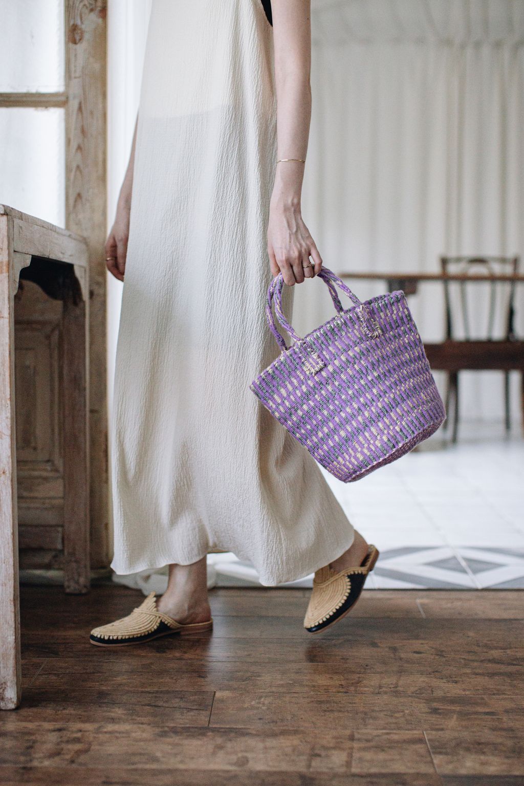 使用劍麻與具有羊毛觸感的亞克力纖維,編織成手感柔軟的提籃